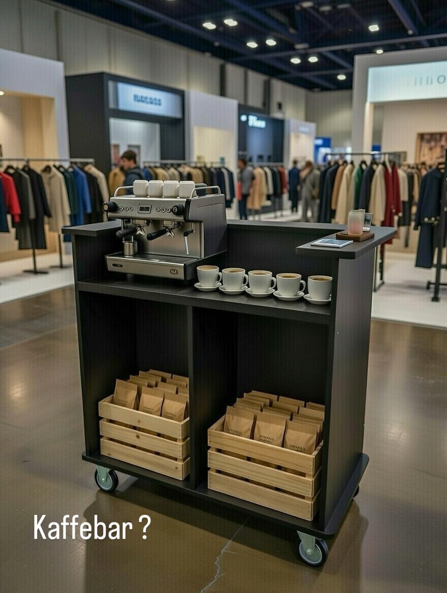 En kaffebar er det oplagte valg på messer, streetfood eller til en havefest. Den er nem at bruge, og der er god plads til espressomaskinen og kaffen. På grund af størrelsen er den diskret og stilet i ethvert arrangement.